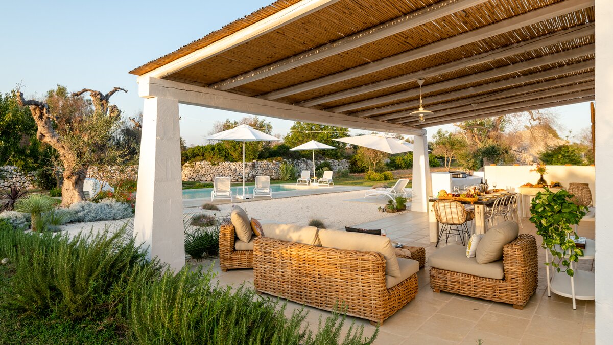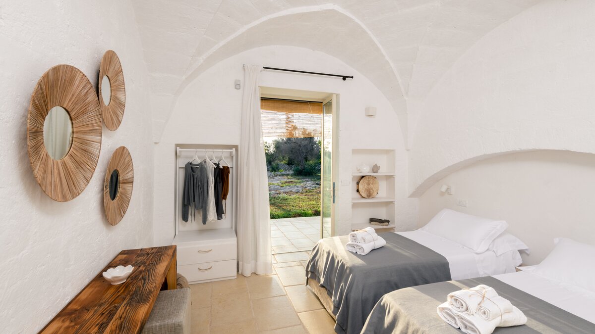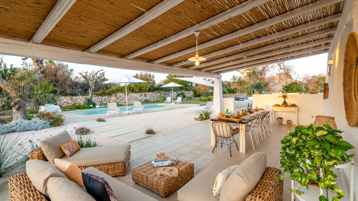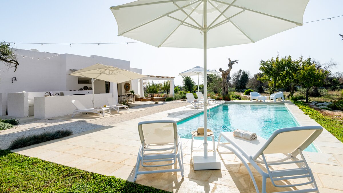 Über den Hängen oberhalb der breiten Sandstrände im Süden Apuliens liegen kleine Dörfer, in denen die Zeit nicht stehen geblieben ist, sondern in einem etwas gemächlicheren Tempo zu laufen scheint. Dies ist die Kulisse für diese wunderschöne neue Villa, die zwischen dem Küstenort Torre Vado und dem Dorf Morciano im Landesinneren liegt und mit modernen Einrichtungen wie Klimaanlage gebaut wurde. Innerhalb der Villa befindet sich die gut ausgestattete Küche mit hübschen Fliesen, die offen zu einem komfortablen und charaktervollen Wohn- / Esszimmer mit schönen Gewölbedecken führt. Der Zugang zum geräumigen Hauptschlafzimmer mit Doppelbett ist von einer Seite des Wohnzimmers aus. Die anderen beiden geräumigen Schlafzimmer sind von der gegenüberliegenden Seite in der Nähe des Speisesaals zugänglich. Allen haben französische Fenster, die sich zum Garten hin öffnen. Denen jungen Eigentümer haben große Sorgfalt darauf geachtet, ihre Villa mit interessanten Holzstücken und schönen dekorativen Keramiken zu dekorieren, die für die Gegend typisch sind. Draußen ist eine Terrasse mit weichen Sitzgelegenheiten ausgestattet und die Küche öffnet sich auf eine weitere Terrasse, auf der man unter einer Pergola im Freien speisen kann. Der neue Infinity-Pool (Fertigstellung im Januar 2020) wurde in den sonnigen Gärten versenkt und es gibt auch eine charakteristische „Pajara“, eine kreisförmige Steinstruktur in den Gärten, die typisch für die Gegend ist. Energiegeladene Gäste können nach Torre Vado spazieren (auf dem Rückweg bergauf!) und die Hügel sind übersät mit den charakteristischen runden Pajara-Strukturen, Dörfern und einer atemberaubenden Aussicht. Es gibt viele preiswerte Restaurants vor Ort und Geschäfte in den Dörfern Morciano oder Torre Vado. Eines Ansammlung von Küstendörfern, Strände mit ausgezeichneten lebhaften Strandclubs, ideal für einen Drink bei Sonnenuntergang und Abendessen und Buchten sind nur eine kurze Autofahrt entfernt. Vom Hafen von Torre Vado aus können Bootsausflüge unternommen werden. Für Tagesausflüge empfehlen wir einen Besuch nach Gallipoli, Otranto und Lecce. Dieses wunderschöne neue Anwesen ist eine ausgezeichnete Wahl für einen entspannten Urlaub in einer authentischen Umgebung.
