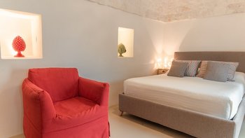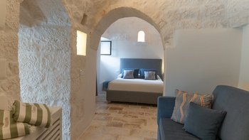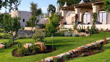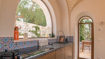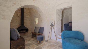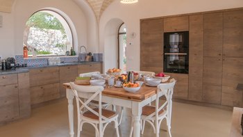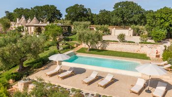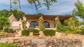Canta Tra I Trulli ist ein stilvolles und luftiges Trullo-Anwesen, das sowohl stilvoll und auch geschmackvoll einfach ist. Deren Villa verfügt über einen OFFENER GRUNDRISS Wohn- und Essbereich mit einer maßgeschneiderten, voll ausgestatteten Küche, mit großen bogenförmigen Glastüren, die auf die möblierte Loggia blicken. Zu den weiteren Annehmlichkeiten im Freien gehören ein großer Pizzaofen, ein Bereich, der als Bar genutzt wird und ein kreisförmiger gepflasterter Bereich mit Feuerstelle und neuen weichen Sitzgelegenheiten. Deren Villa verfügt über vier sehr gut ausgestattete Schlafzimmer, jedes komplett mit modernen Duschbädern und viel Naturlicht. Draußen haben die Gäste die weitläufigen und gepflegten Gärten mit Bäumen, Sträuchern, Pflanzen und verwinkelten Wegen und sehr genossen. Der große, Privater Pool ist perfekt sonnenverwöhnt, mit herrlich weitreichendem Blick auf die apulische Landschaft.