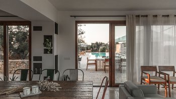 Eingebettet zwischen alten Olivenhainen und Trockensteinmauern, ist die Villa Lucerna der perfekte Ort für einen entspannten Urlaub mit der Familie oder Freunden. Deren Anwesen ist sehr stilvoll und modern eingerichtet. Im Erdgeschoss befindet sich ein wunderschönes, OFFENER GRUNDRISS Wohnzimmer mit einer gut ausgestatteten Küche und einem Essbereich. Deren helle und luftige Zimmer bietet viel Tageslicht und öffnet sich auf die Terrasse. Es gibt auch drei schöne Kingsize-Schlafzimmer auf dieser Etage, jedes mit einem eleganten Bad und zwei mit Zugang zur Terrasse. Im Obergeschoss finden Sie eine nützliche kompakte Küche und ein weiteres Schlafzimmer mit Bad. Ein Nebengebäude mit einem Doppelschlafzimmer mit Dusche en suite und Zugang zur Terrasse ist ebenfalls vorhanden.