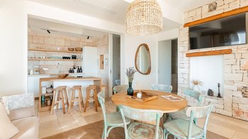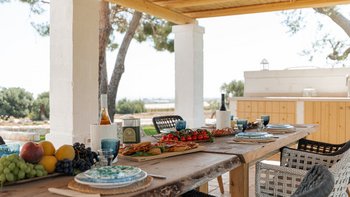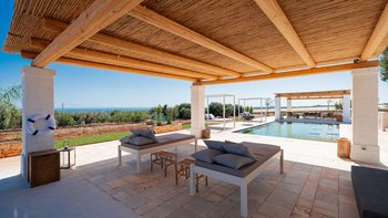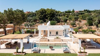 Offering sea views from its various outdoor living spaces, Villa Montemare is a spacious and contemporary villa in Puglia. Set in five acres of land, the villa boasts stylish, modern décor and contemporary architecture. Inside, enjoy an airy kitchen, living and dining space, designed with stylish, minimalist furniture and trendy neutral tones. Each of the villa's three bedrooms are beautifully designed with a super-king size bed, an en suite and access to the terraces. The master bedroom also boasts an in-room bath.