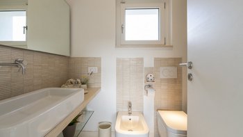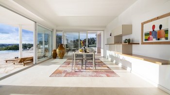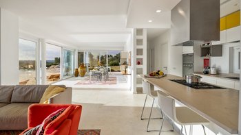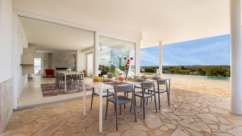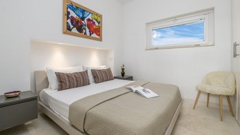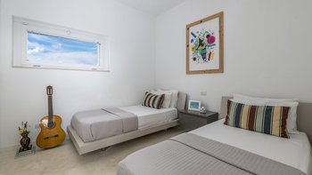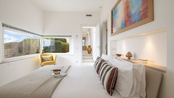 Diese moderne, kunstvoll gestaltete Villa verfügt über drei große Schlafzimmer mit eigenem Bad, von denen zwei mit Doppelbetten und eines mit zwei gemütlichen Einzelbetten ausgestattet sind. Deren Hauptschlafzimmer verfügt auch über einen eigenen begehbaren Kleiderschrank. Deren Villa verfügt über eine Klimaanlage in allen drei Schlafzimmern für diejenigen, die im Sommer unterwegs sind, und Fußbodenheizung für diejenigen, die einen Urlaub in den kälteren Monaten verbringen möchten. Im Inneren befindet sich ein großes, offen geschnittenes Wohnzimmer, eine Küche und ein Esszimmer, die eine geräumige Atmosphäre schaffen, mit breiten Schiebetüren, die das Innere und das Äußere perfekt miteinander verbinden und der Villa ein natürlicheres Gefühl verleihen.