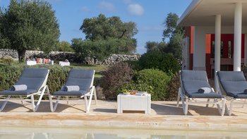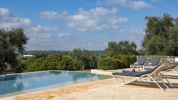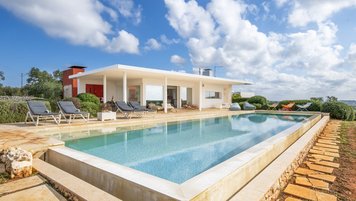 Versteckt in einem bezaubernden Olivenhain in der ruhigen Landschaft Apuliens, mit weitem Blick auf nahe gelegene Städte und Wälder, befindet sich die ruhige und moderne Villa Punto.