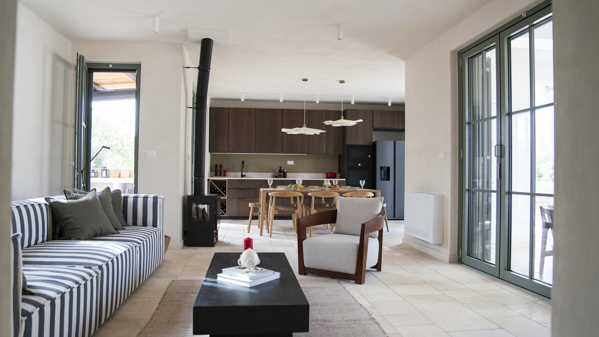 Im Freien ist die Villa für ein einfaches Leben im Freien konzipiert, mit einem privaten 12-Meter-Pool, einer Außenküche, einem Gasgrill und einer Feuerstelle inmitten von Olivenbäumen.