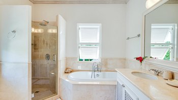 Ein Pavillon am Pool ist der ideale Ort für einen Drink, um auf einen Bajan-Sonnenuntergang anzustoßen, und nach Einbruch der Dunkelheit sorgen Laternen und Kronleuchter für einen Hauch von Magie. Mit einem Kochservice ist die Villa hervorragend für eine Familie oder eine Gruppe von Freunden geeignet. Es gibt vier Schlafzimmer im Haupthaus und das fünfte in einem entzückenden Gästehaus Privatsphäre. Aller Gäste genießen eine kostenlose Mitgliedschaft im Sugar Hill Club, für schöne Freizeiteinrichtungen vor der Haustür, und der Strand und die Annehmlichkeiten von Holetown sind etwa fünf Minuten Autofahrt entfernt.