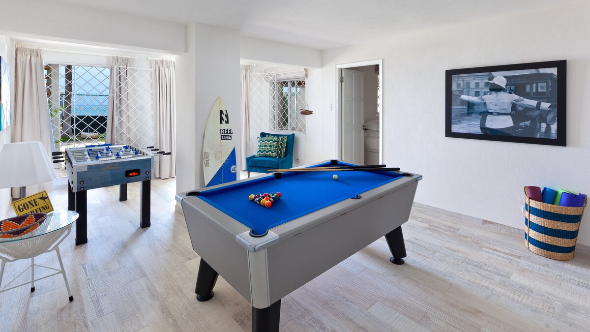 Diese stilvolle Strandvilla ist sehr gut gelegen – nur 2,5 km von Miami Beach und weniger als 4 km vom Fischerort Oistins entfernt. Deren Villa befindet sich an der Südspitze der Insel und verfügt über einen charmanten Infinity-Pool mit Blick auf den Atlantischen Ozean, während es im Inneren kühl, beruhigend und nachsichtig offener Grundriss ist. Deren kürzlich modernisierte Küche wurde komplett modernisiert und verfügt nun über eine große Frühstückstheke und allen notwendigen Komfort, mit französischen Türen, die zur halboffenen Lounge führen. Deren Küche bietet auch direkten Zugang zur großen Veranda am Meer, komplett mit übergroßen Sonnenliegen und einem Esstisch für 8 Personen. Nebenan befindet sich das geräumige Hauptschlafzimmer mit Kingsize-Bett, mit eigenem Duschbad, luxuriöser Badewanne im Zimmer und direktem Zugang zum Privater Pool. Wenn Sie über die geschwungene Treppe nach oben gehen, finden Sie drei weitere Schlafzimmer; zwei Doppel- und ein Zweibettzimmer (zwei mit Gemeinschaftsbad und eines mit eigenem Bad). Allen sind geräumig und modern eingerichtet und verfügen über große Fenster, die den Blick auf das Meer genießen. Weitere drei Schlafzimmer befinden sich im Apartment im Untergeschoss der Villa – es besteht die Möglichkeit eines separaten Eingangs, was bedeutet, dass größere Gruppen von Freunden oder der Familie bei Bedarf mehr Privatsphäre haben können, sowie eine kleine Küchenzeile, ein Wohnzimmer und ein Essbereich, die zu einer kleinen privaten Terrasse führen.