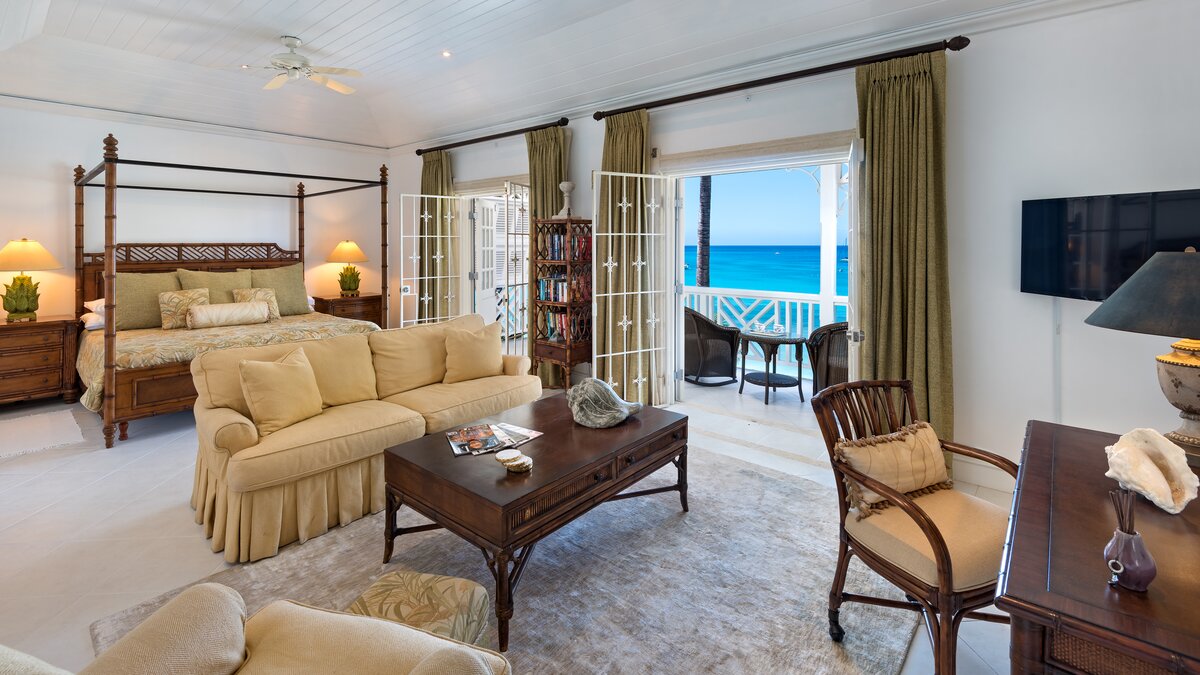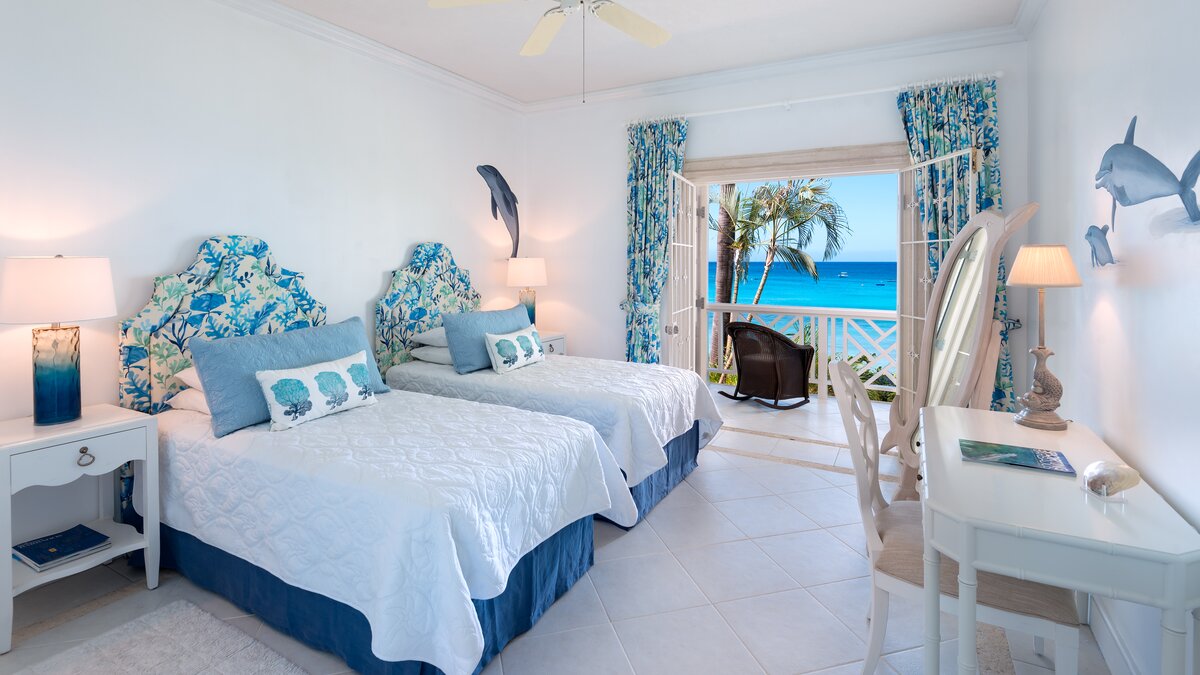 Im ersten Stock befinden sich zwei Schlafzimmer, ein Zweibett- und ein Doppelschlafzimmer, beide mit eigenem Bad und einem Balkon, von dem aus man einen unglaublichen Meerblick genießen kann. Im zweiten Stock befindet sich die Master-Suite, komplett mit einem Himmelbett, einer Sitzecke, einem begehbaren Ankleidezimmer und einem eigenen Duschbad mit Jacuzzi-Badewanne. Der private Balkon bietet auch einen herrlichen Blick auf das Meer. Der Kochservice ist für zwei Mahlzeiten pro Tag inbegriffen, während nahegelegene Annehmlichkeiten in Holetown nur 2,9 km entfernt zu finden sind.