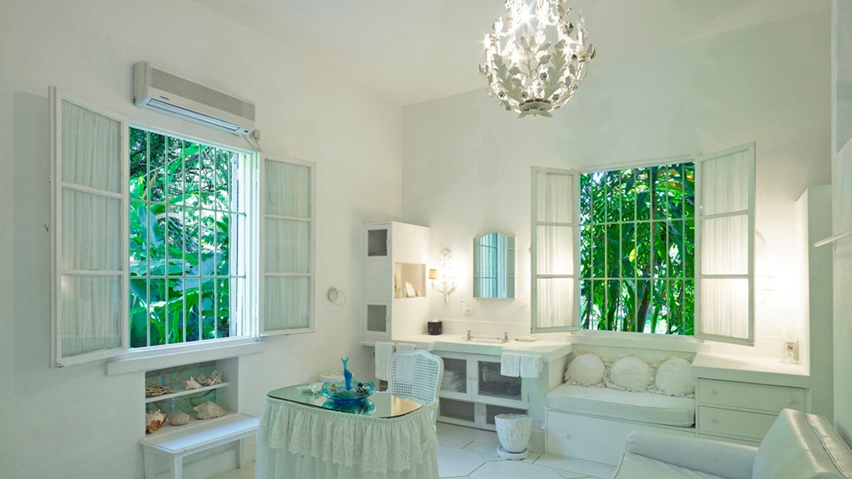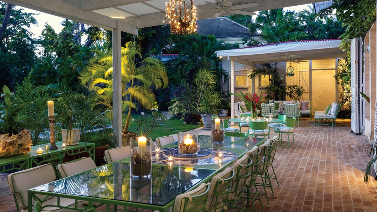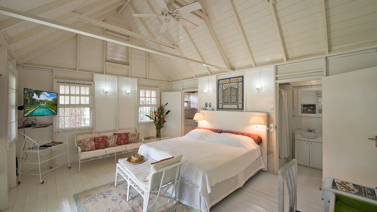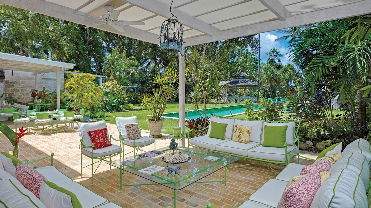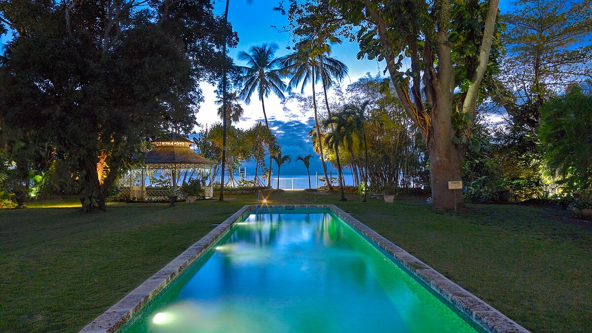 Durch eine Lücke in den Bäumen blickt man auf das Blaue der Karibik und die Aussicht vom außergewöhnlichen Poolgarten ist verlockend. Des Hauses, anmutig und charmant, ist ein tropischer Schatz.