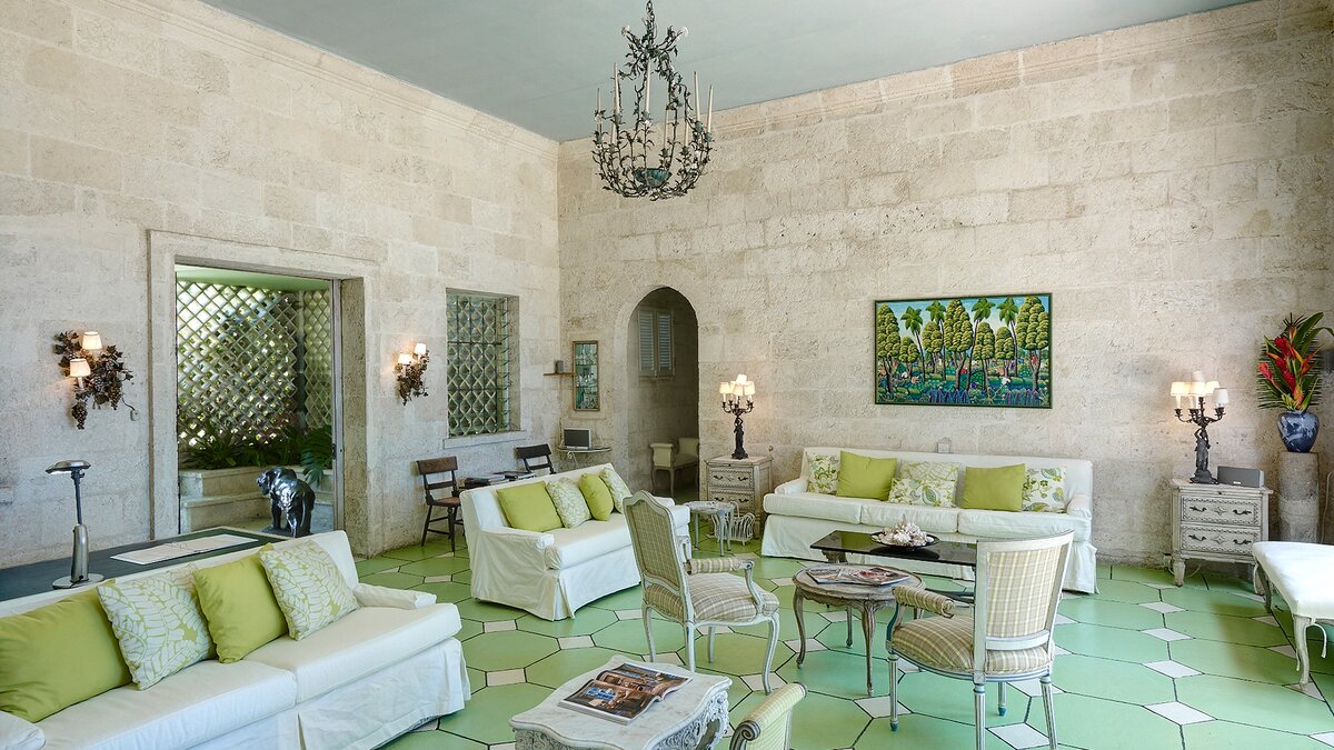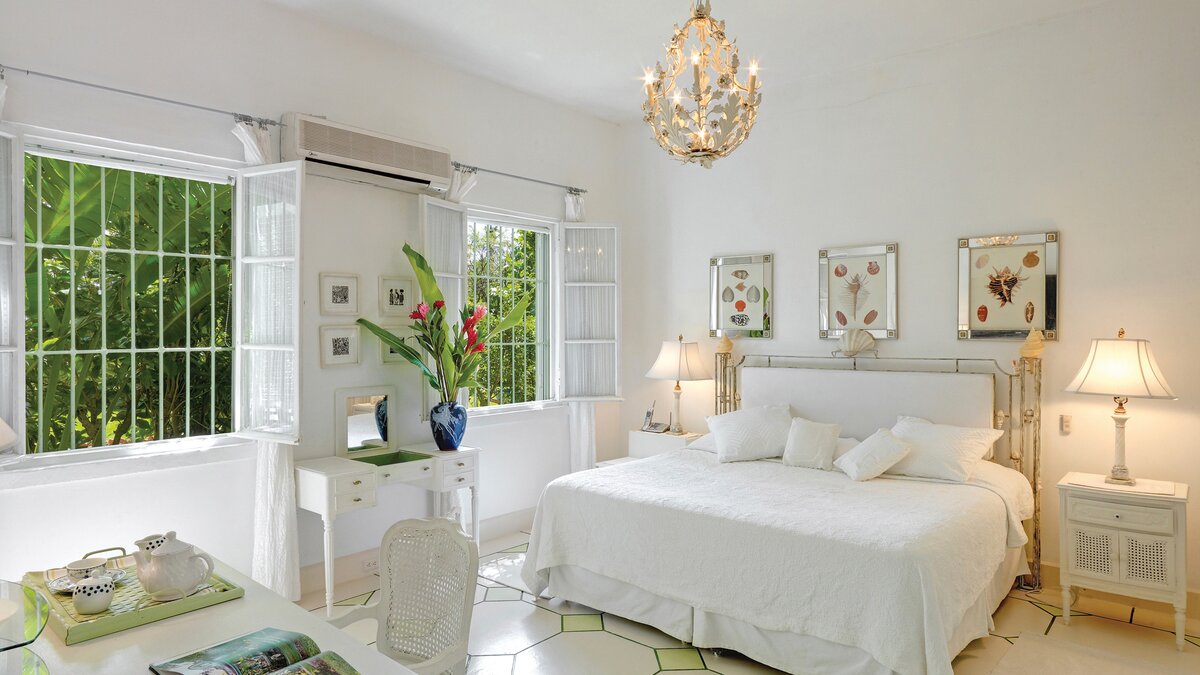 Eine herrliche Familienvilla und ein fotogener Hochzeitsort. Dieser elegante, aber ungezwungene Haus hat Charakter, eine Atmosphäre der alten Welt und romantische Oliver Messel-Design-Elemente, die ihm einen Hauch von Pracht verleihen. Nelson Gay ist eingebettet in weitläufige, gepflegte Gärten, üppiges Grün, das die Privatsphäre der Villa schützt, kühlen Schatten auf der Rasenfläche darunter wirft und sich, nur für kurze Zeit, öffnet, um eine kleine gepflasterte Terrasse auf die weiße Sandküste zu treffen. Perfekt gelegen, um die Aussicht zu genießen, reiht sich der 15 Meter lange Pool mit der kompletten Fensterwand eines Familienzimmers ins Herz des Hauses ein und führt über eine möblierte Terrasse direkt zum Meer. Ein kerzenbeleuchteter Speisesaal in der Villa wird durch einen herrlichen Pavillon in Strandnähe ergänzt, und das ganze Erlebnis wird durch den Kochservice und ein exzellentes Team von Mitarbeitern noch verstärkt. Es gibt fünf Schlafzimmer im Haupthaus und ein wunderschönes Gästehaus auf dem Grundstück beherbergt ein Schlafzimmer mit Doppelbett. Zusätzlich gibt es auch ein Tagesbett im Medienraum und nach Absprache können weitere Gäste in den beiden in sich geschlossenen Chattel-Häusern untergebracht werden, wodurch die maximale Gästezahl auf 18 erhöht wird (gegen Aufpreis).