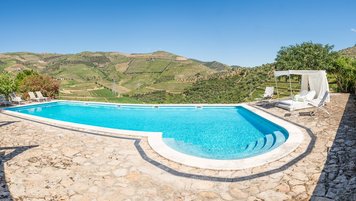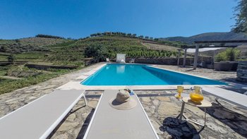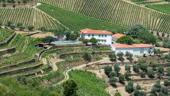 Geschnitzte Terrassen von Weinbergen und Olivenhainen umgeben diese Luxusvilla in Portugal. Friedlich in den Hügeln des Douro-Tals gelegen, ist sie perfekt für ein Familientreffen.