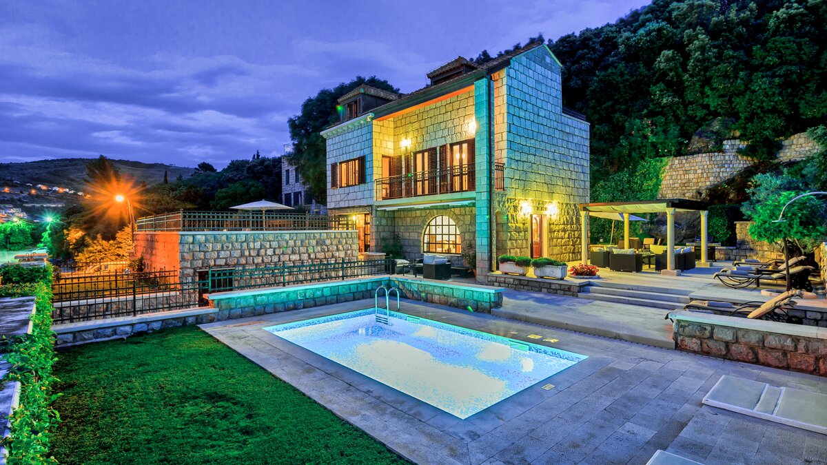 Die Villa Mondrac befindet sich in einer der exklusivsten Lagen an der dalmatinischen Küste und ist ein einladendes Anwesen aus authentischem kroatischem Stein. Deren Villa bietet einen herrlichen Blick auf das Meer von allen drei Etagen, während sie nur wenige Minuten außerhalb von Dubrovnik liegt. Deren Erdgeschoss mit Zugang zur Poolterrasse verfügt über eine moderne Küche, einen Essbereich und ein gemütliches Wohnzimmer mit einem Steinkamin. Deren oberen Stockwerke verfügen über fünf geräumige Schlafzimmer, von denen zwei en suite sind. Deren große Außenterrasse führt auf einen schönen privaten Pool mit Liegestühlen, einem überdachten Sitzbereich und einem Esstisch im Freien. Von hier aus können die Gäste Kroatiens herrliche Sonnenuntergänge genießen oder den vorbeifahrenden Fähren zusehen.
