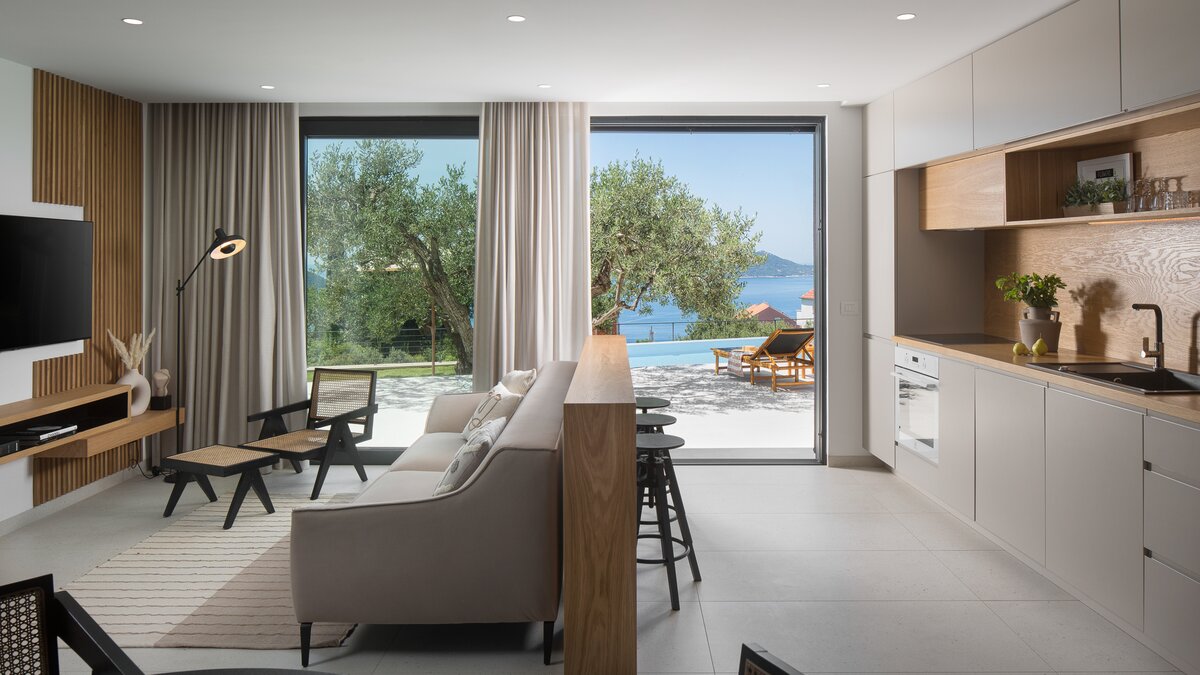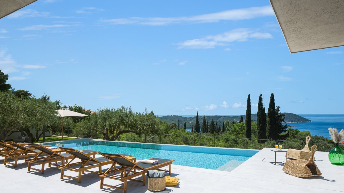 Diese neu erbaute Villa befindet sich über Dubrovnik und bietet herrlichen Meerblick, stilvolle moderne Möbel und einen beheizbaren Infinity-Pool.