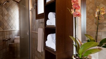 Das Erdgeschoss ist hell und luftig, dank hoher Decken und großer Fenster, die den Blick auf das Meer und den Pool frei lassen. Ein offener Wohn-, Ess- und Küchenbereich nutzt die Aussicht optimal, mit französischen Fenstern, die auf die sonnendurchfluteten Terrassen führen. Ein Schlafzimmer mit eigenem Duschbad teilt sich ebenfalls diese Ebene, komplett mit einer eigenen romantischen Terrasse mit Meerblick. Auf der UNTERE ETAGE befindet sich ein zweites Schlafzimmer mit direktem Zugang zum Garten und ein weiteres en-suite Duschbad, was die Villa ideal für zwei Paare oder kleine Familien macht.
