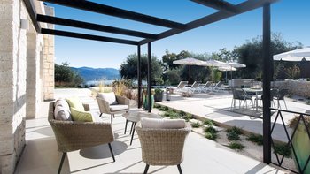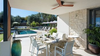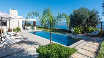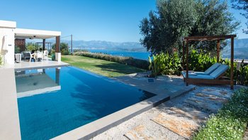 Villa Amavi ist ein stilvoller Rückzugsort mit drei Schlafzimmern auf Korfu, der Privatsphäre, Abgeschiedenheit und einen atemberaubenden 180-Grad-Blick über das Wasser in Richtung Albaniens Berge verspricht.