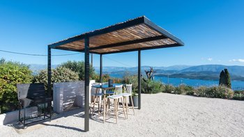 Die Villa Amavi liegt auf einem Hügel über den unglaublichen Stränden von Kerasia, Kouloura und Kalami entlang der Nordostküste von Korfu und in der Nähe aller wichtigen Sehenswürdigkeiten. Die Villa Amavi bietet ihren Gästen einen außergewöhnlichen Rückzugsort mit einem atemberaubenden 180-Grad-Blick auf die albanische Küste und die dahinter liegenden Berge, nur 2,5 Kilometer über dem Wasser. Dieser neu erbaute Villa ist ein perfekter Rückzugsort für Familien oder kleine Gruppen von Freunden, die ein einzigartiges Küstenerlebnis suchen. Sie zeichnet sich durch einen unverwechselbaren Stil aus, der den modernen und rustikalen Charme nahtlos mit lokalem Stein in das Design der Villa integriert.