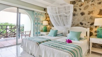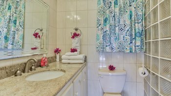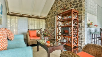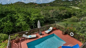 Mit einfachem Zugang zu den Stränden auf beiden Seiten der Insel und mit Blick auf den Golfplatz bis zum Karibischen Meer ist dies eine gut platzierte und sehr anpassungsfähige Villa, die durch die wunderbare Küche der Haushälterin Marietta noch angenehmer wird. Der Villa D’Arcy liegt in einem angelegten Garten mit typisch tropischen Blumen und Obstbäumen und wird über einen Pfad erreicht, der durch Bambus- und Kokospalmen in die obere Ebene des Hauses führt. Der offene Wohnbereich umfasst eine sehr gut ausgestattete Küche mit Frühstückstheke und ein attraktives Wohnzimmer mit polierten Holzfußböden, Kühlventilatoren und bequemen Stühlen. Deren Lamellentüren erstrecken sich über die gesamte Länge einer Wand und öffnen sich auf die Essterrasse, die nach Westen auf das Meer und die Sonnenuntergänge blickt. Jedes der klimatisierten Zimmer im Untergeschoss öffnet sich auf eine kleine Terrasse mit Zugang zum Pool und zur Sonnenterrasse. Eines der Zimmer ist für Doppel- oder Zweibettzwecke eingerichtet. 25 Minuten Fahrt von der Hauptstadt Castries entfernt, liegt die Villa nur fünf Minuten vom Strand, den Golfplätzen und den Tennisplätzen entfernt.