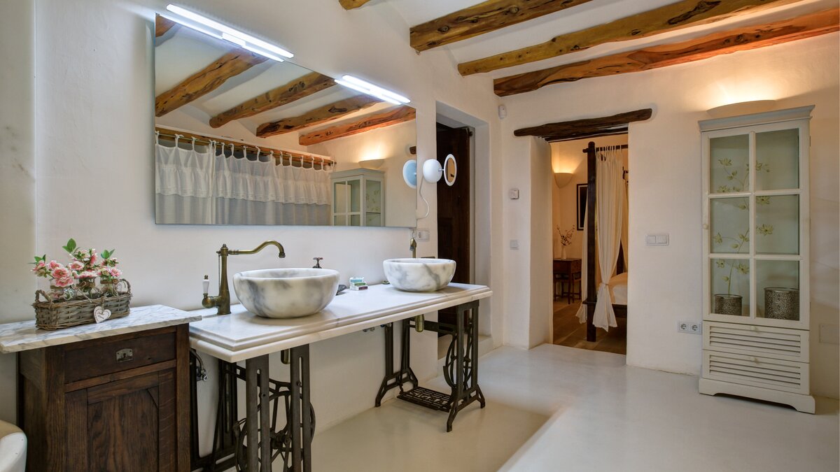 Größere Gruppen werden dieses luxuriös renovierte Bauernhaus in der Nähe der Bucht von San Antonio lieben – ein 300 Jahre altes Anwesen mit sechs Schlafzimmern und einem privaten Infinity-Pool.