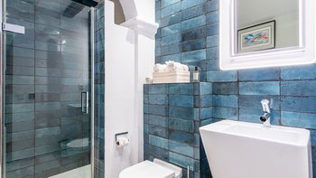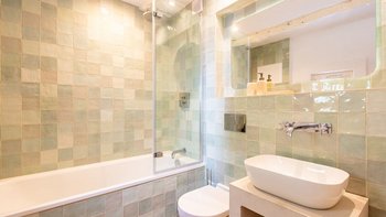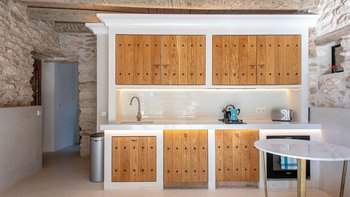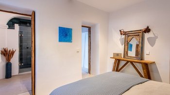 Im Nebengebäude aus Stein versteckt, gibt es einen gemütlichen Wohnbereich und eine Küchenzeile mit Fenstertüren, die zu einem schattigen Sitzbereich führen, und zwei Doppelschlafzimmer, beide mit eigenem Bad. Dieser freistehende Gebäude ist ideal für Gäste, die während ihres Aufenthalts etwas Privatsphäre wünschen.
