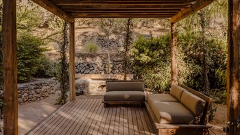 Diese atemberaubende, ruhige Oase verfügt über üppige Gärten, einen ruhigen Poolbereich, einen Fitnessraum, eine Sauna und eine unglaubliche Innenarchitektur – der perfekte Ort für einen entspannten Inselurlaub.