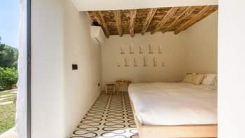 Die Finca Tranquila liegt ruhig eingebettet in üppiges Grün, der ideale Ort für einen erholsamen Aufenthalt auf Ibiza. Deren Innere der Villa ist modern, stilvoll und minimalistisch, mit stilistischen Kunstwerken rund um die Zimmer verteilt. Deren Villa verfügt über geräumige gemeinschaftliche Wohnräume sowie einen Meditationsraum und eine Sauna und. Es gibt insgesamt sechs schöne Schlafzimmer, die alle mit einem eleganten und minimalistischen Bad ausgestattet sind. Während sich die meisten der Schlafzimmer im Haupthaus befinden, gibt es ein Doppelzimmer in der stilvollen Casita und ein weiteres und privat im gut ausgestatteten Baumhaus, hoch auf dem Gelände für ein wahrhaft einzigartiges Erlebnis.