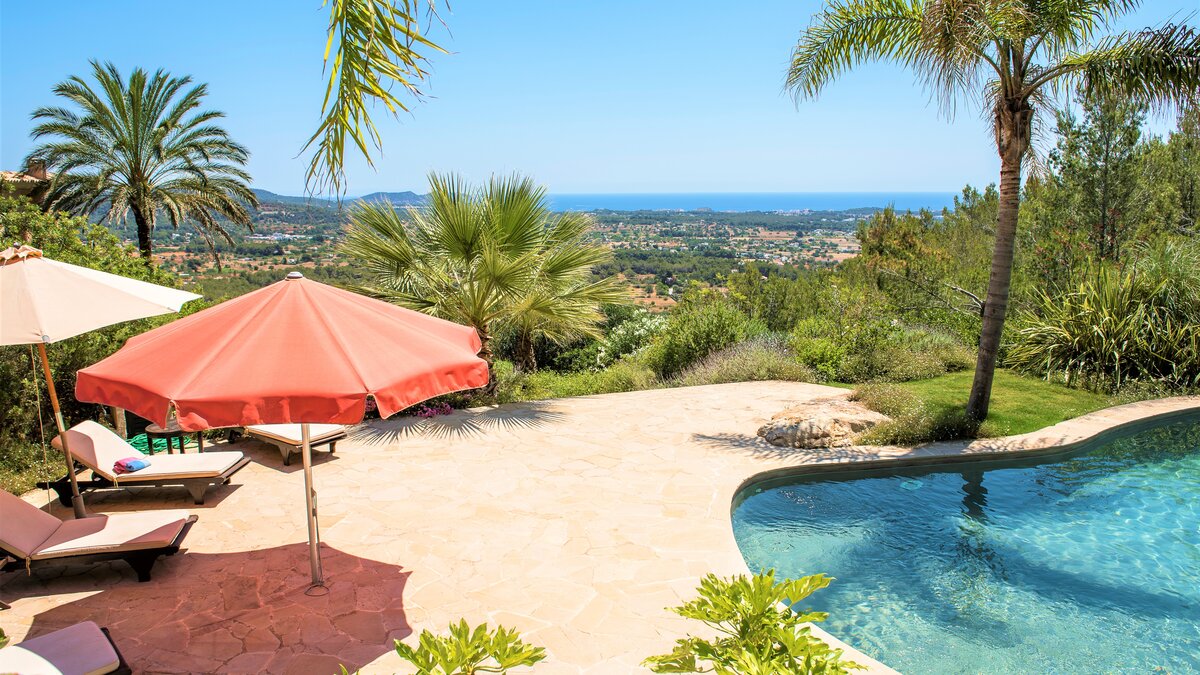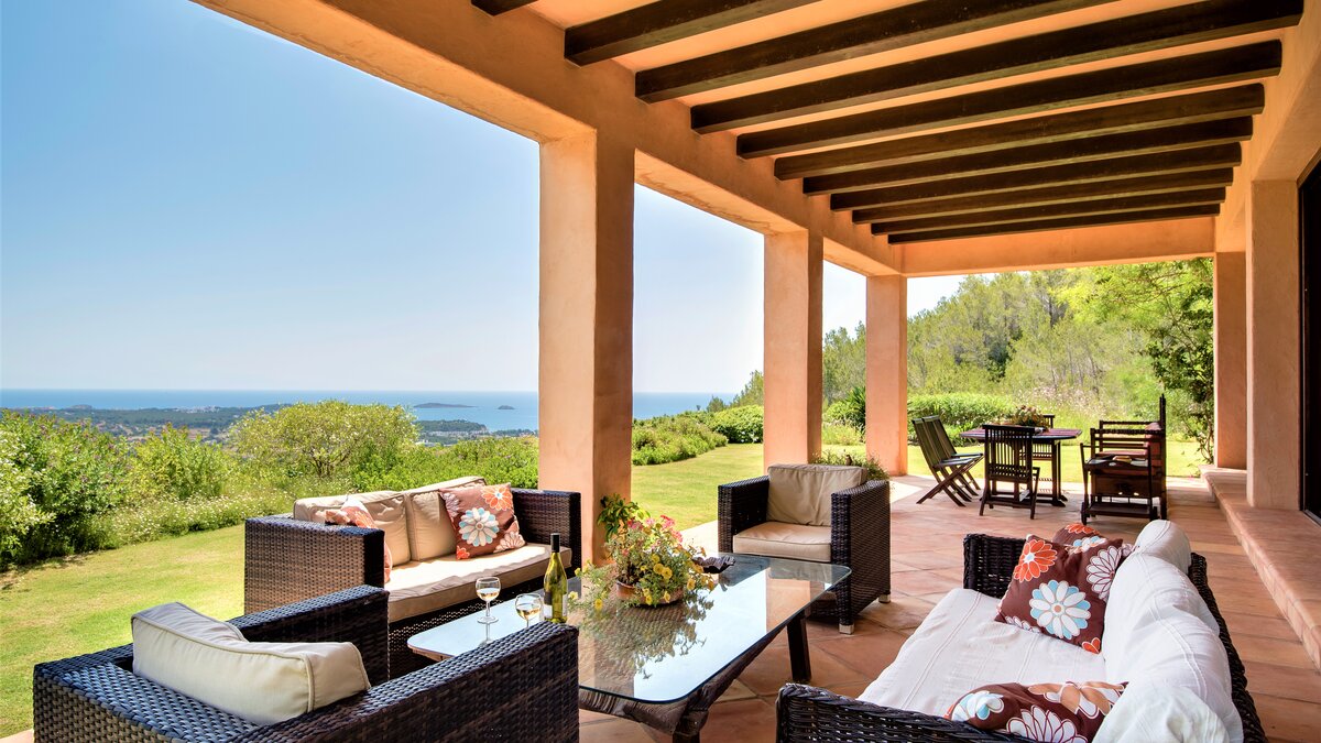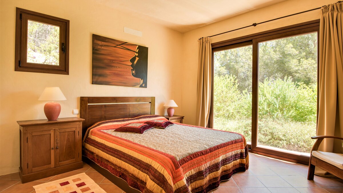 Die Villa Violeta liegt ruhig auf einem Hügel inmitten wunderschöner Gärten und bietet einen herrlichen Panoramablick auf die Umgebung. Im Inneren ist das Anwesen elegant in einem einzigartigen alten Ibiza-Stil eingerichtet, mit kunstvollen Möbeln und farbenfrohen Kunstwerken. Im Erdgeschoss befindet sich ein großes, OFFENER GRUNDRISS Wohnzimmer, das sich wunderschön auf die Terrasse und die Gärten öffnet. Es gibt auch eine voll ausgestattete Küche, einen Arbeitsbereich und ein Schlafzimmer mit Doppelbett mit Bad. Im Obergeschoss finden Sie drei weitere Schlafzimmer mit Bad. Dessen separate, neu renovierte Nebengebäude ist ideal für einen Urlaub mit mehreren Generationen. Es verfügt über ein Schlafzimmer, ein eigenes Bad, eine Küchenzeile und einen Wohnbereich für Gäste, die ein Extra an Privatsphäre bevorzugen.