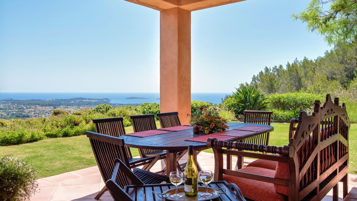 Mit einem herrlichen Panoramablick auf Ibiza ist die Villa Violeta eine einladende und geräumige Unterkunft mit Annehmlichkeiten nur fünf Fahrminuten entfernt.