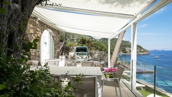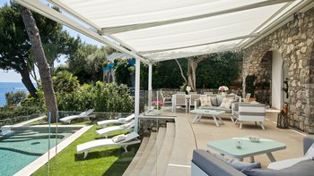 Divinomare liegt an der Küste und ist ein außergewöhnlicher Rückzugsort am Meer, nur hundert Meter von einem Felsstrand entfernt, der direkt über eine private Seilbahn oder einen malerischen Fußweg erreichbar ist. Diese elegante zweistöckige Villa bietet Platz für bis zu 12 Personen in 6 Schlafzimmern und ist somit ideal für Familienfeiern oder einen Urlaub mit Freunden. Die Villa verfügt auch über einen Infinity-Pool direkt am Meer mit Hydromassage-Funktion, der einen idyllischen Ort bietet, um die Aussicht zu genießen.
