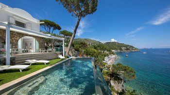 Divinomare ist eine Villa mit sechs Schlafzimmern in Marina del Cantone mit einem Infinity-Pool, malerischen Terrassen und direktem Zugang zur faszinierenden Küste Süditaliens.