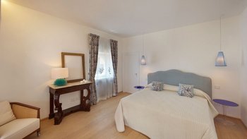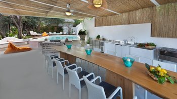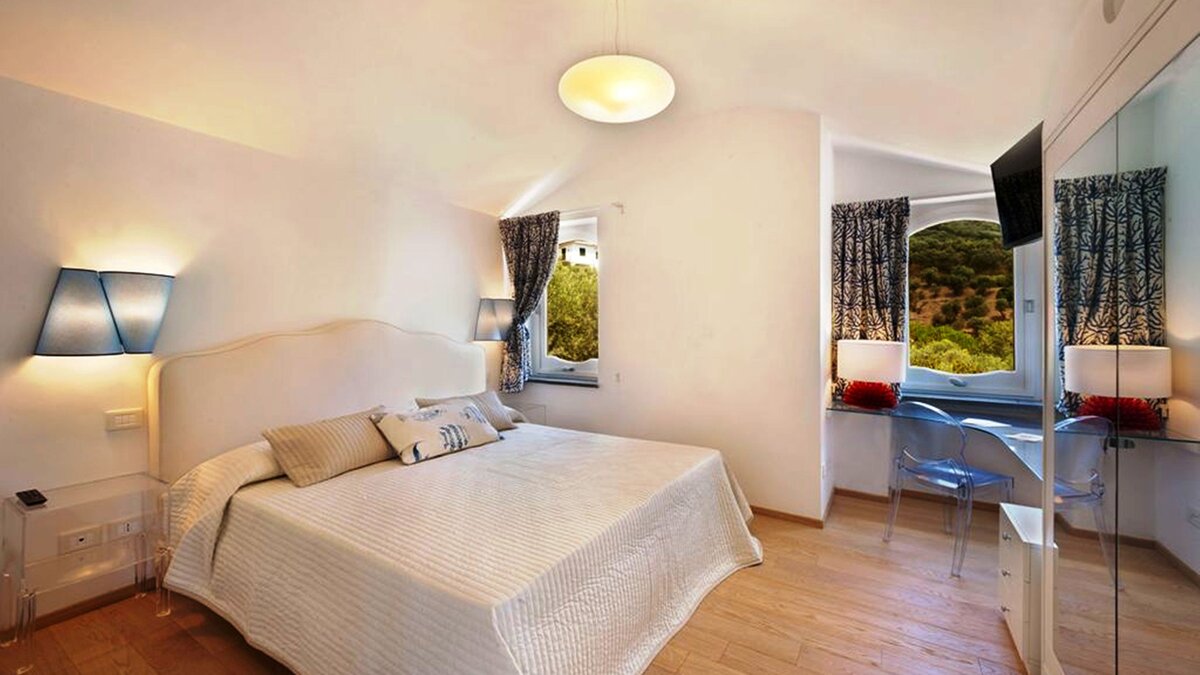 Das stilvolle, moderne Interieur des L’Ancora ergänzt die Aufteilung der Villa auf wunderbare Weise. Deren offene Wohn- und Essbereiche sind mit wunderbaren Details und Möbeln geschmückt und schaffen den perfekten Ort für Geselligkeit zu Hause. Deren Küche ist mit einem 4-Flammen-Gasherd, einer Kaffeemaschine, einem Toaster, einer Mikrowelle, einem Geschirrspüler, einem Kühlschrank mit Gefrierfach und einer Saftpresse für alle kulinarischen Bedürfnisse ausgestattet. Jeden Morgen wird im L’Ancora ein kontinentales Frühstücksbuffet serviert. Jedes der fünf Schlafzimmer der Villa verfügt über ein eigenes Bad, von mehreren Zimmern mit Blick auf den Garten oder das Meer und eines mit eigener Hydromassage-Badewanne. Oben auf der zweiten Etage öffnet sich ein Schlafzimmer auf eine private Terrasse, von der aus man einen unglaublichen Blick über das Land und das Meer hat.