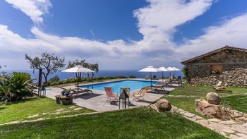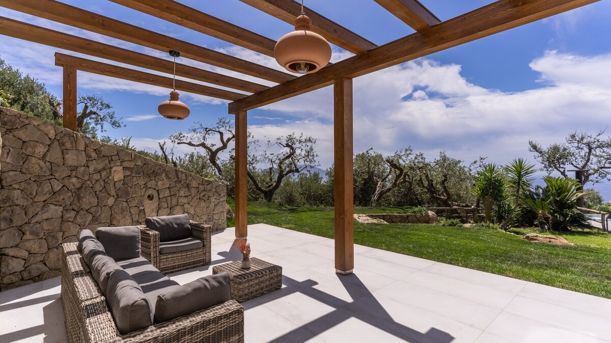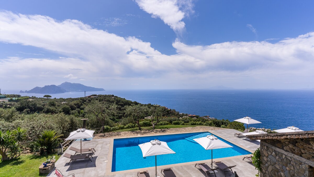 Das Äußere der Villa entfaltet sich wie ein Meisterwerk in mediterranen Farbtönen. Der private Pool befindet sich zwischen sorgfältig positionierten Liegen und bietet einen Blick auf das Meer, das sich bis in die Unendlichkeit erstreckt. Denen Terrassen und die umliegenden Gärten bieten unterschiedliche Umgebungen – in einem Moment intim, im nächsten weitläufig – perfekt für ein verweilendes Abendessen, spontane Gespräche oder ruhige Betrachtung. Deren Villa verfügt auch über eine ausgezeichnete Lage. Ein gutes Restaurant ist 700 m entfernt (die letzten 300 m bergauf auf dem Rückweg!) und liegt nur sieben Kilometer vom kristallklaren Wasser der Bucht von Nerano, fünfzehn von den dramatischen Klippen von Positano und zwölf vom pulsierenden Herzen von Sorrento entfernt.