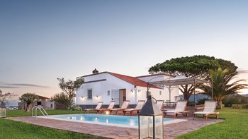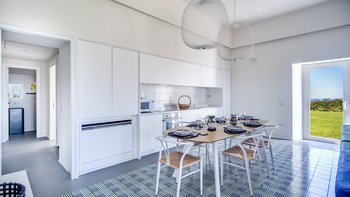 Beim Betreten der Villa werden Sie von einem hellen und luftigen offenen Wohnbereich mit voll ausgestatteter Küche begrüßt, der es zum perfekten Ort macht, um köstliche Familienmahlzeiten zuzubereiten und gleichzeitig eine gesellige Atmosphäre zu bewahren. Wenn Sie sich durch die Villa bewegen, finden Sie gut ausgestattete Doppelschlafzimmer, jedes mit eigenem Bad. Im Nebengebäude befindet sich ein weiteres Doppelschlafzimmer. Jede Ecke des Innenraums spiegelt ein durchdachtes Design wider, das eine warme und einladende Atmosphäre schafft.