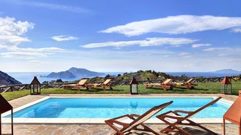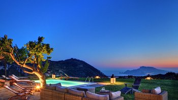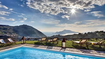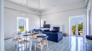 Eine herrliche Villa mit vier Schlafzimmern in der Nähe von Sant’Agata, Italien, Miracapri verspricht charmante Essbereiche im Freien, Blick auf das Meer und luftige Innenräume, alle nur 15 Minuten zu Fuß von den Restaurants im Dorf Termini entfernt.