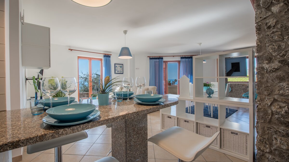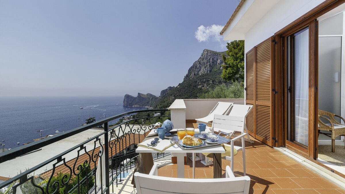 Das Innere der Villa ist kühl und komfortabel. Der OFFENER GRUNDRISS Wohnbereich ist in neutralen Farbtönen mit geschmackvollem Dekor in Blautönen gehalten, um die Umgebung der Villa zu betonen. Es gibt ein bequemes Sofa und einen großen Fernseher mit Sky sowie einen voll ausgestatteten Küchenbereich. Ein separates Esszimmer bietet den Gästen die Möglichkeit, insgesamt drinnen zu speisen. Aller vier komfortablen Schlafzimmer rund um die Villa verfügen über einen eigenen Blick auf Sorrent. Dessen separate Nebengebäude bietet eine zusätzliche kleine Küche, eine Frühstücksbar, einen Wohnbereich und ein Schlafzimmer mit eigenem Bad mit Balkon.