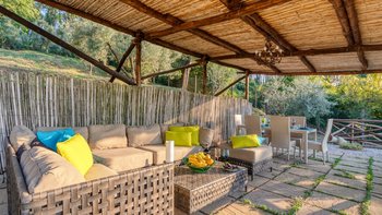 Die Villa verfügt über elegant eingerichtete Innenräume mit pastellfarbenen Wänden und edlen Möbeln, ergänzt durch die berühmte „Vietri“ Keramik. Denen Unterkünfte verteilen sich auf drei Ebenen und bieten viel Platz und Privatsphäre für die Gäste.