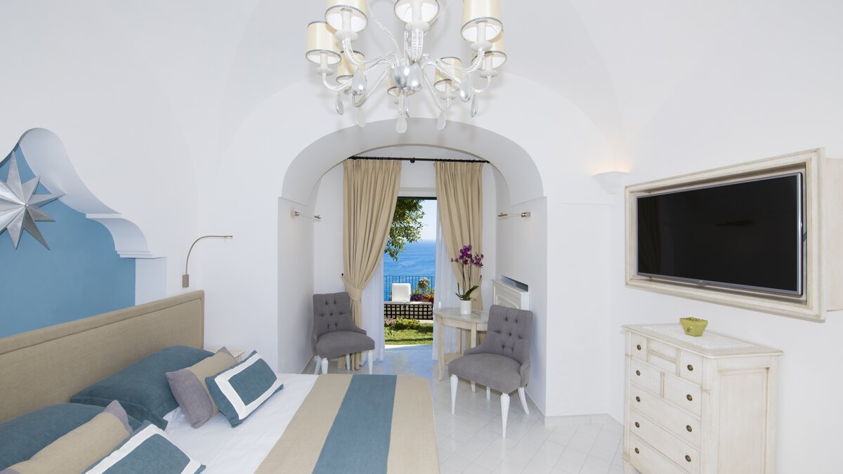 Eine wunderschön restaurierte Positano-Residenz, in der weite Meerblick, historischer Charakter und ruhiger moderner Stil zusammenkommen.