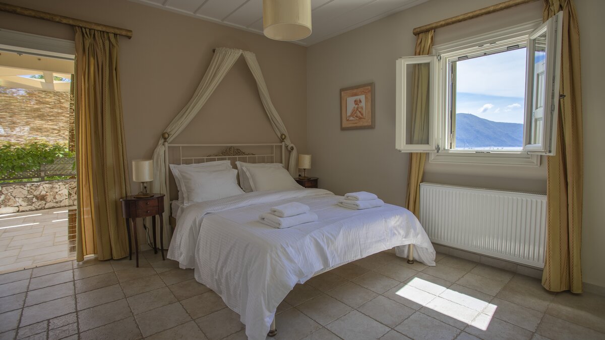 Der herrliche Meerblick über die Boote, die im Hafen von Fiscardo nach Ithaca fahren, und die perfekte Lage am Hang machen diese hübsche Villa sehr beliebt. Delias schöne Terrasse verfügt über einen charmanten Infinity-Pool, einen Esstisch im Freien und Platz zum Entspannen und den Blick auf das Meer zu genießen. Denen Innenräume sind einfach, aber frisch und komfortabel, im Erdgeschoss befindet sich eine OFFENER GRUNDRISS Küche und ein Esszimmer, ein reizvolles Wohnzimmer und ein Duschbad. Im ersten Stock befinden sich ein Hauptschlafzimmer mit Doppelbett und ein Zweibettschlafzimmer mit jeweils eigenem Duschbad und privaten Balkonen, was Delia perfekt für Familien oder Paare macht. Nur einen kurzen Spaziergang vom Haus entfernt, bietet Fiscardo zahlreiche Restaurants, Bars und Geschäfte und wunderschöne Kiesstrände sind weniger als 2 km entfernt. Delia teilt sich das Anwesen mit seinen Schwestervillen Yolanda und Lyra, die für größere Gruppen zusammen gebucht werden können.