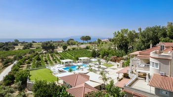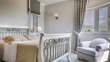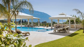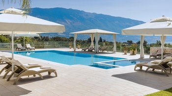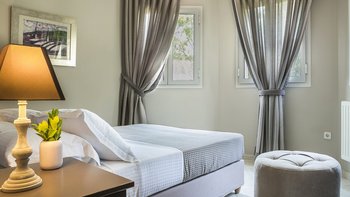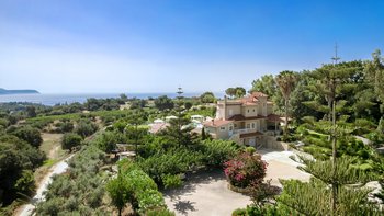 Auf einem sehr großen Grundstück in der Nähe des Dorfes Spartia gelegen, mit wunderschönen Gärten und einem großen Pool, ist Kosmima die perfekte Unterkunft für große Gruppen und Feiern mit viel Platz zum Leben im Freien und Entspannen am Pool. Draußen erstrecken sich die 5 Hektar großen Gärten rund um das Haus und bieten Ruhe und der Pool blickt auf das Meer hinaus. Ein großer Pavillon am Pool bietet eine Außenküche und einen großen schattigen Sitzbereich und Kosmima ist sehr gut für Hochzeiten und Veranstaltungen im Freien ausgestattet. Im Inneren des Hauses öffnet sich das Erdgeschoss zu einem großen offenen Grundriss Wohn- und Esszimmer, das sich zu einer großen Terrasse mit Blick auf das Meer und eine sehr gut ausgestattete Küche öffnet. Ebenfalls im Erdgeschoss befindet sich ein charmantes Doppelschlafzimmer mit angrenzendem Duschbad. Im ersten Stock öffnet sich das Hauptschlafzimmer mit eigenem Bad auf einen Balkon. Drei weitere Doppelschlafzimmer (eines davon kann ein Zweibett sein) teilen sich zwei Duschbäder gegenüber und zwei offene Balkone. Im unteren Erdgeschoss befinden sich drei unabhängig zugängliche Wohnungen, jede mit einer kleinen Küchenzeile und einem Duschbad, die sich zur Poolterrasse öffnen. Kosmima ist zu Fuß (850 m) von den Tavernen in Spartia und nur 1 km vom schönen Sandstrand von Spartia entfernt.