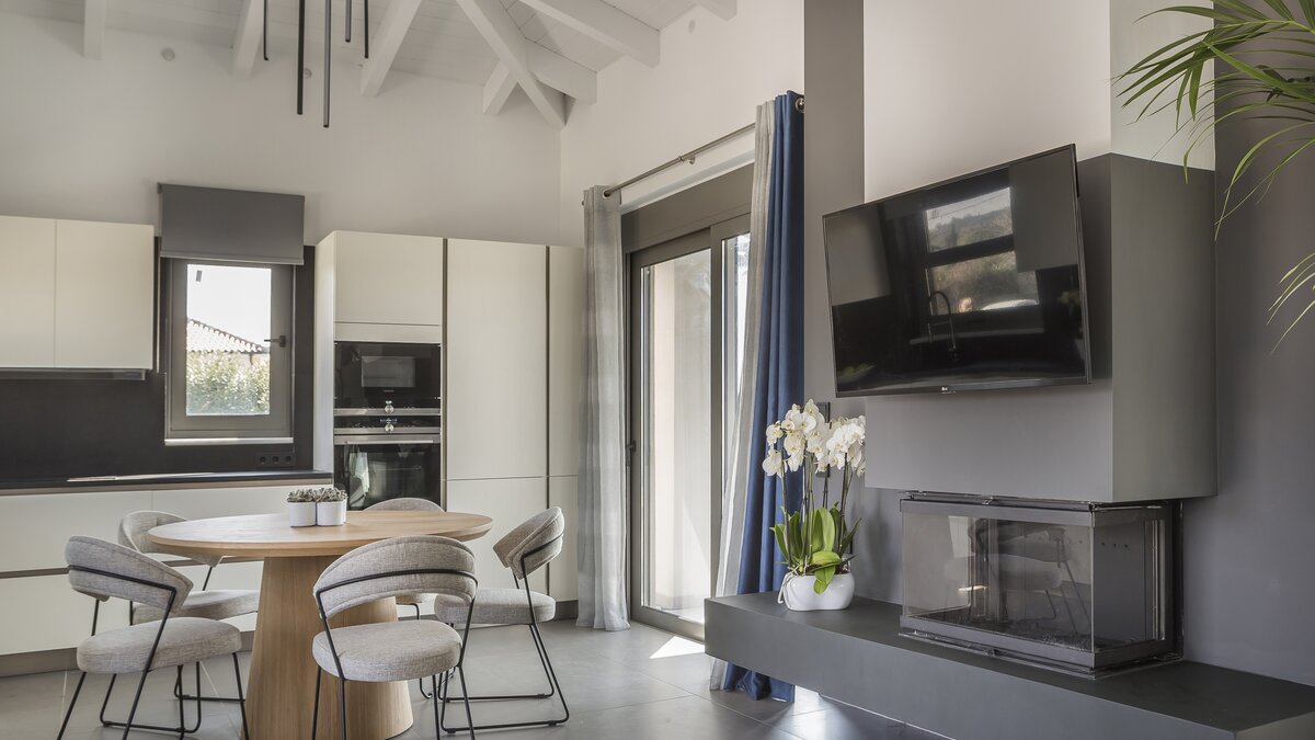 Die Villa Alena ist eine moderne Ergänzung unseres Kefalonia-Portfolios und ist elegant und in kühlen Grautönen mit eleganten Marmorbädern eingerichtet. Eine voll ausgestattete Küche teilt sich einen offenen Raum mit einem Bereich zum Entspannen und bequemen Sitzgelegenheiten sowie einem Esstisch im Innenbereich; ein zweites Wohnzimmer ist mit weichen Sofas und einem großen Fernsehbildschirm ausgestattet. Draußen gibt es eine schattige Terrasse mit Blick auf die umliegenden Olivenhaine, und es gibt einen fantastischen Pool mit Holzliegen und Sonnenschirmen.