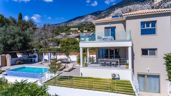 Die Villa Estrella ist ein elegantes Küstenparadies an der Südküste von Kefalonia und verbindet moderne Eleganz mit weitem Meerblick. Sie bietet einen Infinity-Pool und ein nahtloses Leben im Innen- und Außenbereich.
