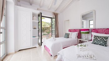 Das private Kardaki Estate erstreckt sich über 40 Hektar Olivenhain, an der nordöstlichen Spitze von Korfu, zwischen dem beliebten Kassiopi und dem friedlichen St. Spiridon. Mit herrlichem Blick auf das Meer und den Sand der Kalamaki-Bucht erweist sich das Acacia House als enormer Erfolg. Durchdrungen von Ruhe, spiegeln architektonisches Design und Inneneinrichtung griechische Inseltraditionen wider und fügen Einrichtungen des 21. Jahrhunderts und einen schicken und modernen Stil hinzu. Der Hauptgeschoss der Villa liegt in den Hang gedrängt und beherbergt zwei Schlafzimmer mit eigenem Bad, jedes mit eigener Terrasse; und eine moderne Küche und ein großes Wohn- / Esszimmer mit riesigen Glastüren zu einer überdachten Terrasse. Die große Terrasse mit schattigen Wohn- und Essbereichen und Blick auf den Ionischen Kanal verfügt über eine Außentreppe zur unteren Ebene, wo eine Gästesuite zusätzliche Privatsphäre genießt, sich zum Pool hin öffnet und die Möglichkeit hat, ein zusätzliches Kinderbett zu stellen. Dessen großzügige Infinity-Pool der Villa bildet den Mittelpunkt des Lebens im Freien. Tavernen im hübschen Perithia sind nur 1 km entfernt.