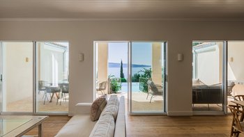 In dieser auffälligen, neu renovierten Familienvilla auf Korfu, öffnet sich jedes Zimmer zum Außenbereich und genießt einen atemberaubenden Blick auf die Bucht. Ihrer anhaltenden Beliebtheit bei CV Villas-Gästen ist keine Überraschung.