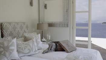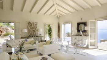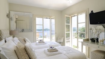 Ein Torbogen führt vom eleganten weißen Wohn- / Esszimmer zu einer ebenso modernen Küche mit mehreren französischen Türen, die sich auf die Terrassen mit Meerblick öffnen, die die Villa mit Licht durchfluten und die herrliche Aussicht in jedes Zimmer bringen. Stufen und ein gewundener Pfad führen zum Meerschwimmen von einem Steg unterhalb des Hauses, der nur mit der Schwestervilla Cepheus House geteilt wird, die ebenfalls von CV Villas angeboten wird. Kassiopis Cafés, Bars und Restaurants sind 15 Minuten zu Fuß entfernt.