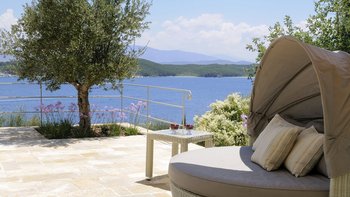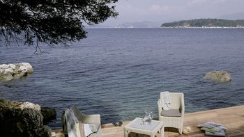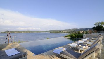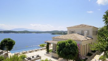 Diese Luxusvilla auf Korfu mit ihrem wunderschönen Infinity-Pool direkt über dem Meer verfügt über riesige Sonnenterrassen mit Blick auf das Wasser. Ruhig, privat, in der Nähe der Sehenswürdigkeiten von Kassiopi.