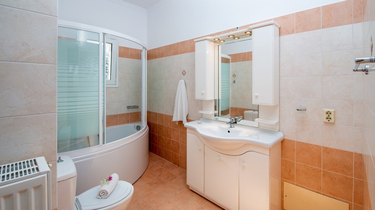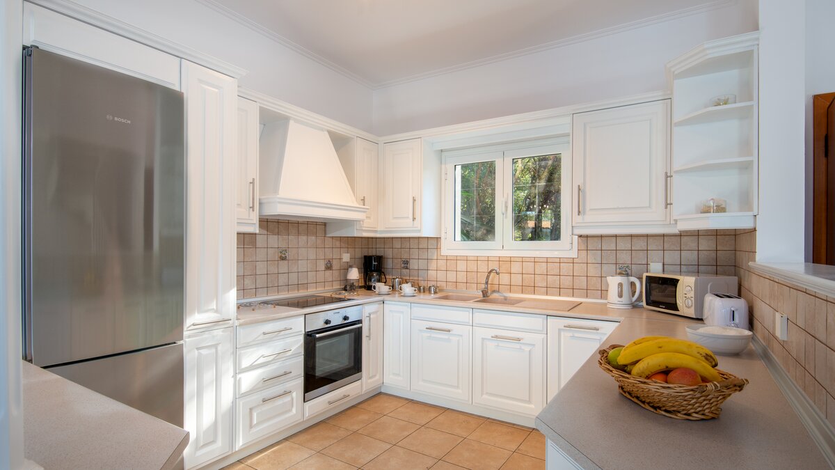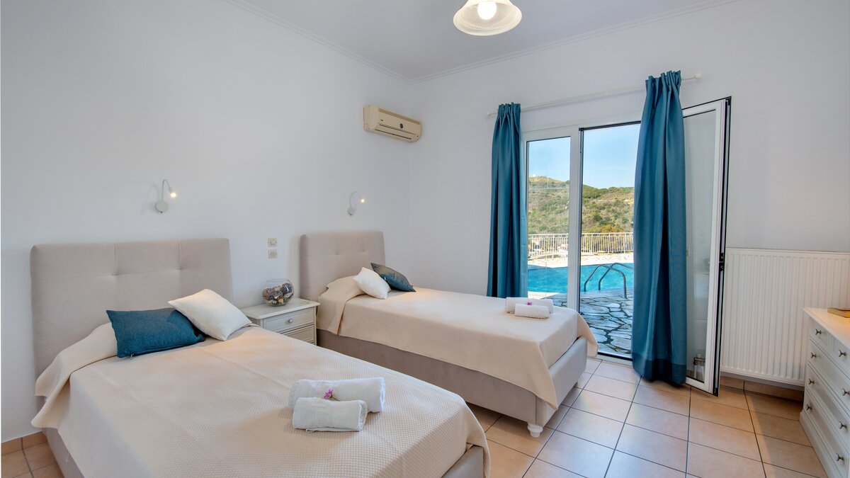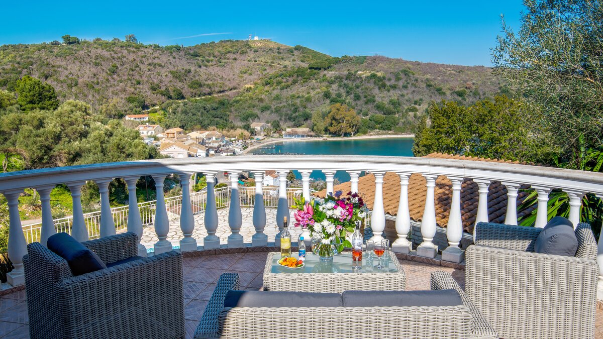 Die Villa verfügt über eine schöne runde Terrasse im ersten Stock, die zum Charme der Villa beiträgt. Eine mit Stein verkleidete Poolterrasse umgibt einen großen privaten Swimmingpool – mit Sonnenliegen und einem eingebauten Grillplatz, dies ist ein großartiger Ort, um einfach nur zu sitzen und die Fischerboote und die Aussicht auf die Bucht zu bewundern. Der Erdgeschoss besteht hauptsächlich aus einem großen OFFENER GRUNDRISS Wohn-, Ess- und Küchenraum sowie einem Twin-Bett mit französischen Türen, die zur Poolterrasse führen. Im Obergeschoss befinden sich zwei weitere Schlafzimmer – ein weiteres Zweibett-Schlafzimmer mit eigenem Duschbad und ein Haupt-Doppelschlafzimmer mit Bad en suite. Beiden Zimmer im ersten Stock führen zu einem möblierten Balkon, der bequeme Sitzgelegenheiten und eine herrliche Aussicht bietet. Tavernen finden Sie in Avlaki, nur 3,4 km entfernt – oder Sie können 6 km fahren, um die Geschäfte und Restaurants in Kassiopi zu erkunden.