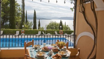 Die Villa Kasomitria befindet sich in Privatbesitz, exklusiv von CV Villas, und besteht aus nur sechs Wohnungen. Sie ist eine sehr attraktive Villa in wunderschön bunten, blumengeschmückten Gärten. Denen Villa erstreckt sich über mehrere Ebenen, und das Giorgos-Apartment selbst ist auf Split Ebene gebaut, mit einer offenen Wohnküche, die ein paar Stufen über den klimatisierten Zweibett- und Doppelzimmern liegt. Deren kompakte, aber komfortable Apartment befindet sich im Erdgeschoss und ist einfach eingerichtet und verfügt über eine private überdachte Terrasse am Pool. Denen sechs Wohnungen teilen sich ein Swimmingpool und ein Kinderplanschbecken auf einer sonnigen Terrasse mit Meerblick und einem tragbaren Grillplatz. Mit herrlichem Blick auf das Meer, die Landzungen und die Berge ist die Villa 10 Minuten zu Fuß vom Strand Kerasia und 15 Minuten von St. Stephano entfernt. Größere Gruppen von Familie oder Freunden könnten zwei oder mehr der Apartments zusammen buchen, und wenn sie in ihrer Gesamtheit gebucht würden, könnte die Villa eine Gruppe von bis zu achtzehn Personen beherbergen.
