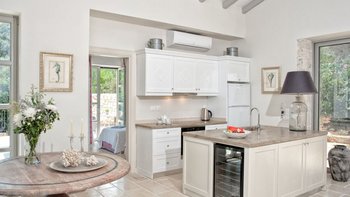 Als eines von fünf stilvollen Häusern, die sich ein privates und ruhiges Anwesen teilen, bietet diese Luxusvilla auf Korfu einen herrlichen Meerblick und einfachen Zugang zu einer Reihe von beliebten Resorts.