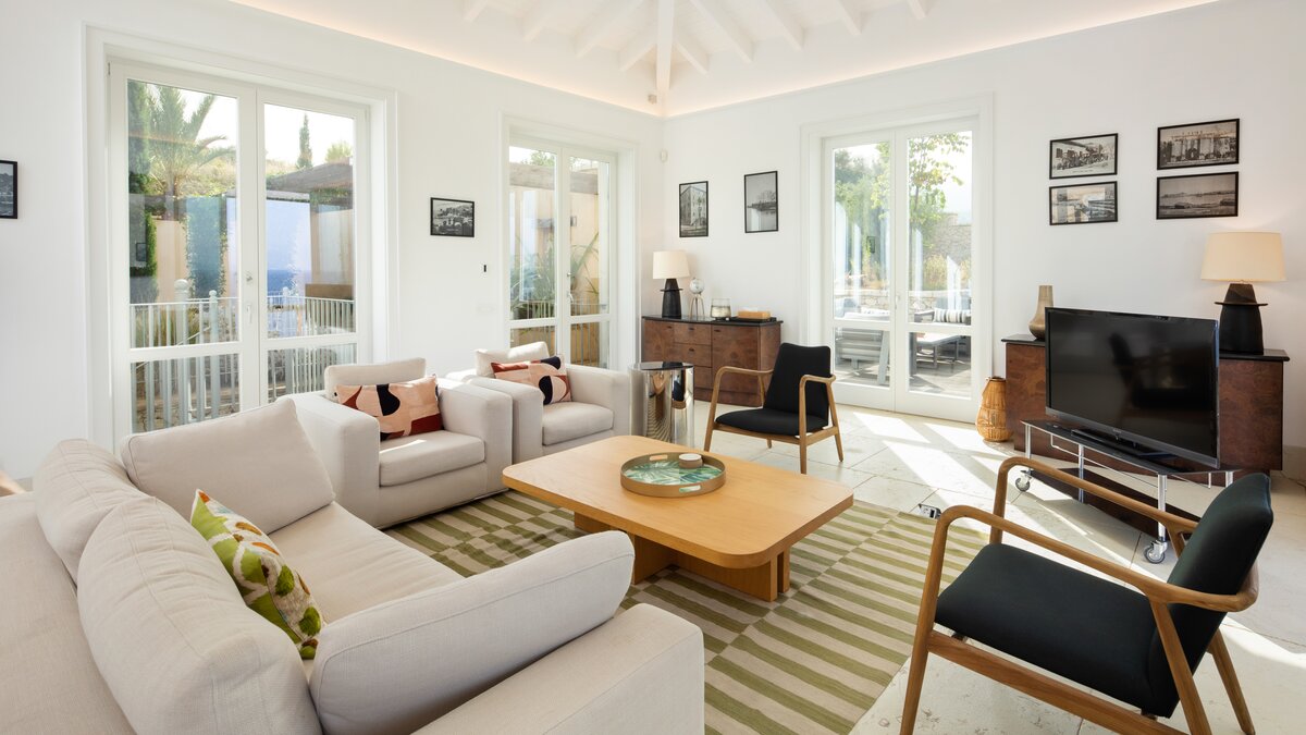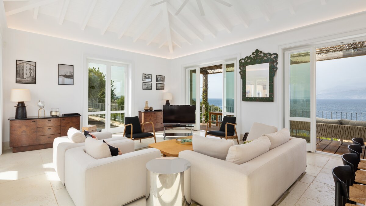 Chic, modern und anspruchsvoll, Kalliopi ist eine willkommene Ergänzung unserer ABOVE-Kollektion auf Korfu. Im Inneren ist die Villa kühl und modern mit sauberen weißen Wänden und raumhohen Fenstern, die das Sonnenlicht und die umliegende Aussicht willkommen heißen. Dessen Erdgeschoss ist hell und geräumig mit einem OFFENER GRUNDRISS Wohn- und Essbereich und einer voll ausgestatteten Kochküche; Ein Fernsehraum ermöglicht es den Gästen, drinnen zu entspannen und zu entspannen. Es gibt vier Schlafzimmer im Erdgeschoss, die alle en suite sind und drei von vier zur Poolterrasse; Ein Etagenschlafzimmer ist ideal für Jugendliche. Deren erste Etage ist dem Hauptschlafzimmer gewidmet, mit einem Badezimmer en suite und einem privaten Innenhof mit einer freistehenden Badewanne im Freien.