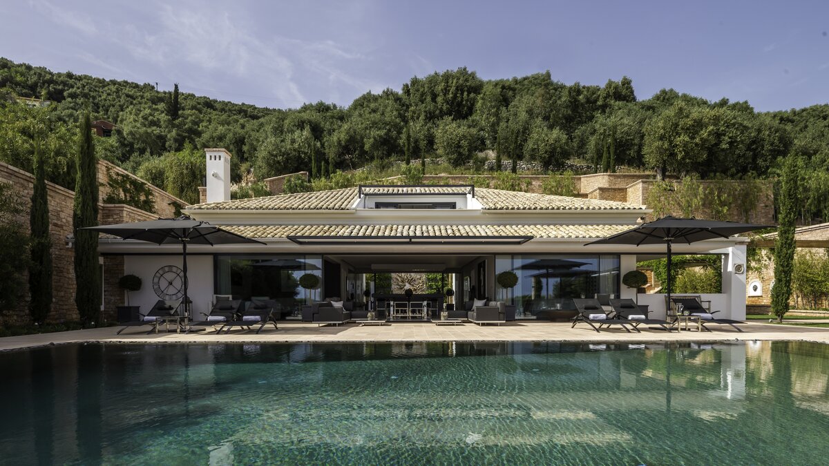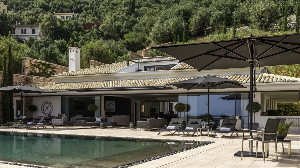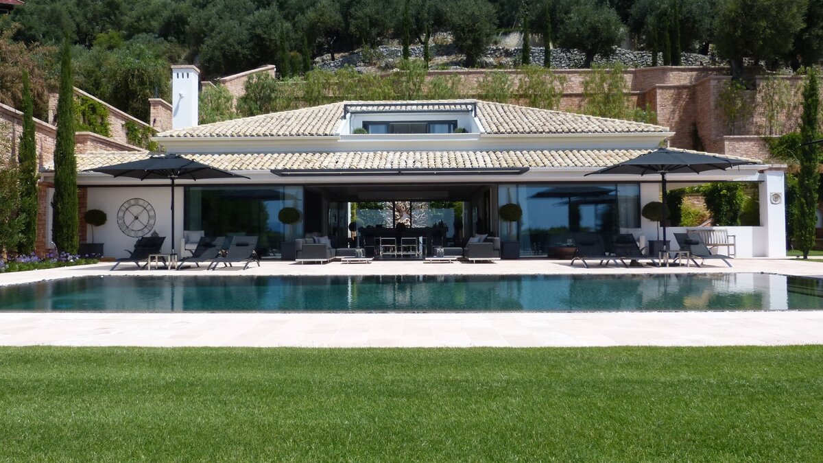 Eine stilvolle, anspruchsvolle und sehr luxuriöse Villa in einer beneidenswerten Lage über dem Meer an der begehrten Nordostküste Korfus.