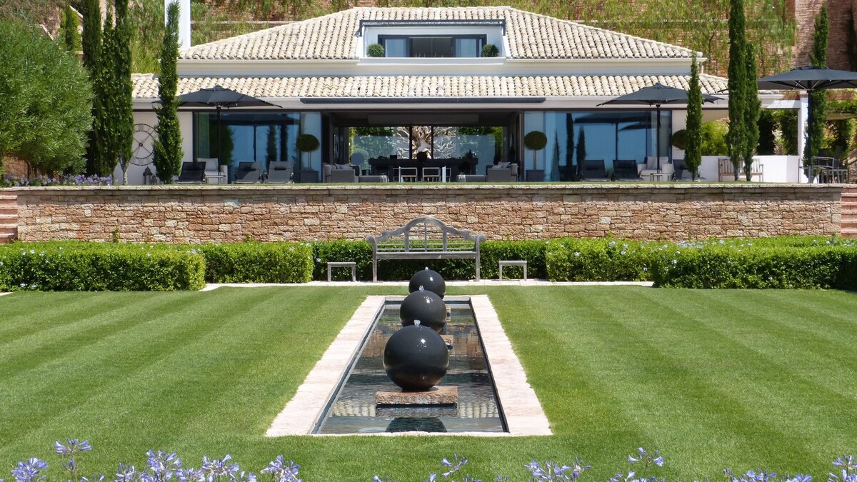 • Elegante Landschaftsgärten schmücken das Äußere der Villa wunderschön.