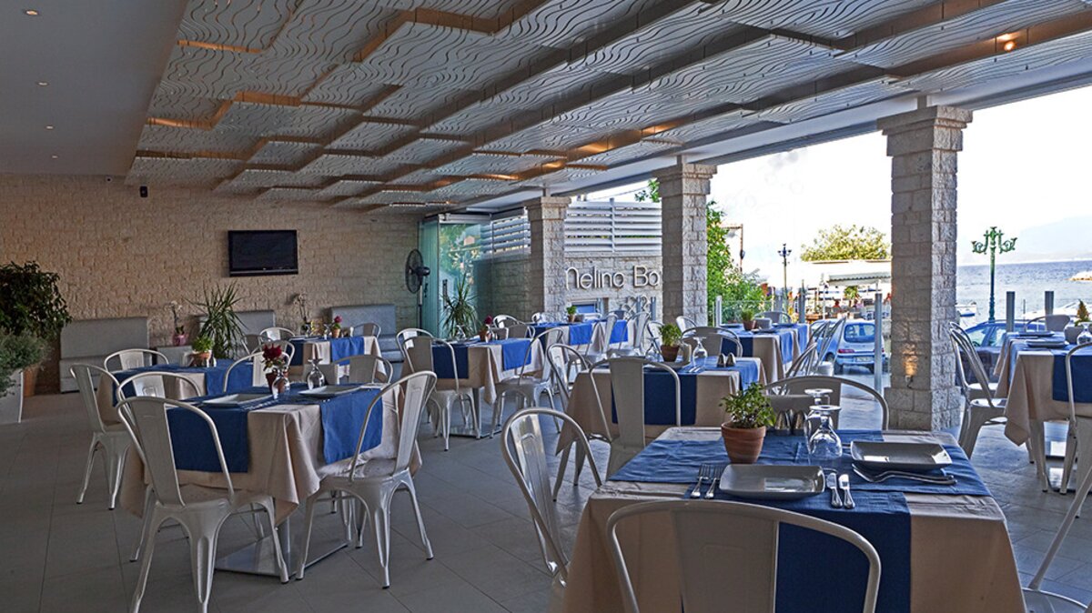 Der hohe Standard an Komfort wird von der begehrten Lage direkt am Wasser dieses schicken Boutique-Hotels begleitet. Mit nur zweiundzwanzig wunderschön eingerichteten Gästezimmern ist das Hotel klein genug für Service mit persönlicher Note, aber groß genug, um zu beeindrucken. An der Vorderseite des Gebäudes befindet sich ein Restaurant und eine Weinbar auf Split Ebene mit Tischen im Innen- und Außenbereich, mit Blick auf das Meer und den Sonnenaufgang, und bietet eine mediterrane Speisekarte, die von einem Gourmetkoch aus frischen lokalen Produkten zubereitet wird. Ein kontinentales und warmes Frühstück wird hier serviert, während der Zimmerservice als zusätzlicher Genuss angeboten wird.