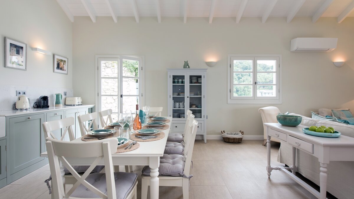 Diese wunderschön eingerichtete Drei-Bett-Villa mit Charme, Charakter und modernem korfiotischen Stil genießt den Meerblick an der Nordostküste in der Nähe von Agni Strand und beliebten Tavernen.